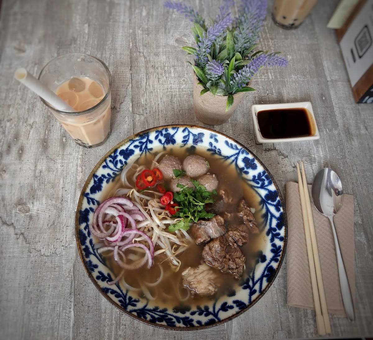 The menu is where this restaurant really shines. Bubble Tea is a clear favorite and comes across as more than just a drink here-it’s part of the experience. Refreshing, well-balanced, and fun, it pairs perfectly with the food. Another standout is the Pho Bo - Beef, a classic Vietnamese noodle soup that feels rich and satisfying. The broth has depth, the beef is tender, and everything comes together in a way that feels authentic and thoughtfully prepared.
